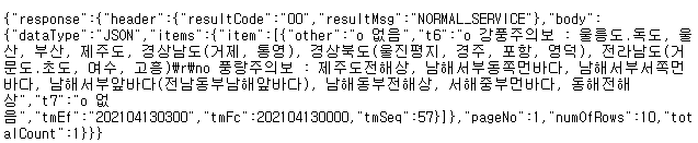 대부분의 API로 제공되어지는 형태는 대부분 JSON이나 XML로 제공된다