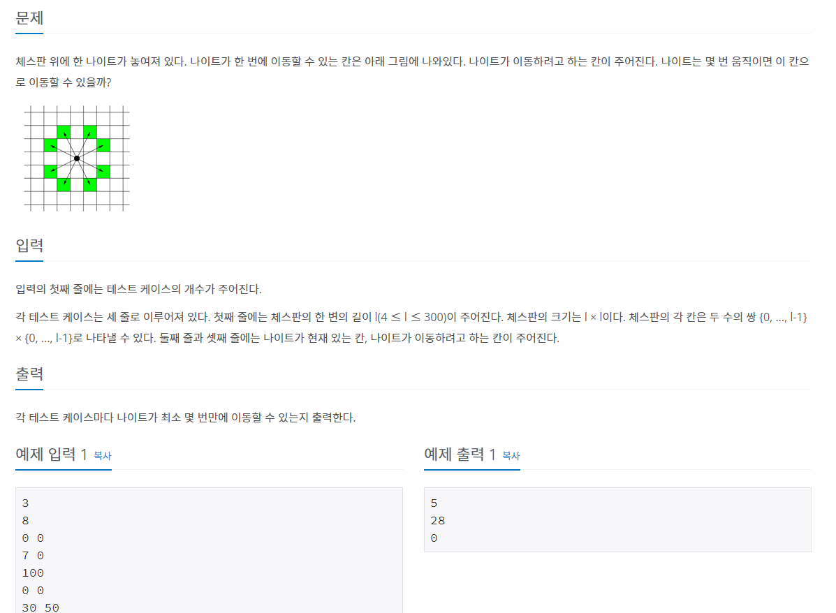 기본적인 BFS로 푸는 좌표 이동 문제. 그냥 나이트의 이동경로만 다르지 크게 다른 문제와 다를 것은 없음. 매우매우 쉬운 문제!