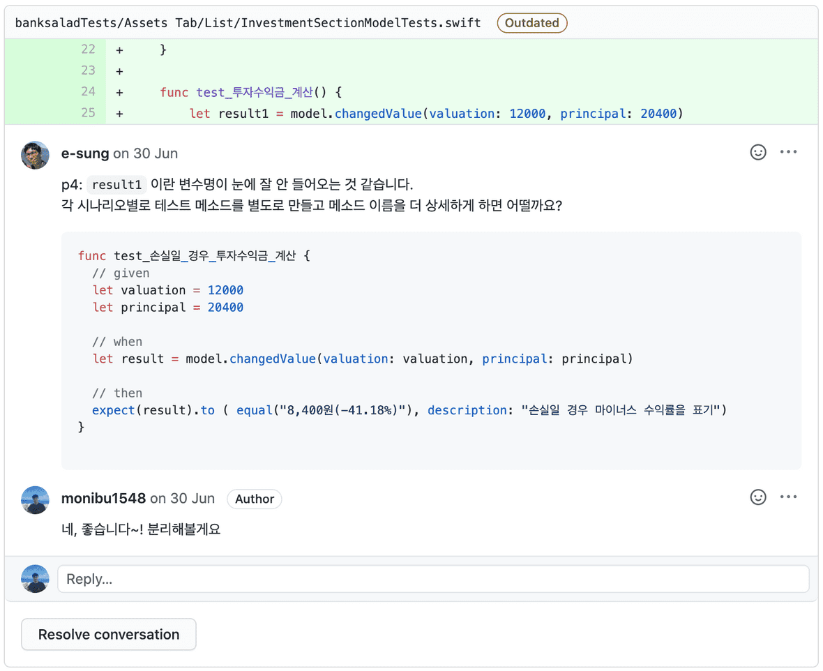 코드엔 정답이 없기때문에, 무조건 누가 맞는게 아니라, 함께 발전시키는 것이다.