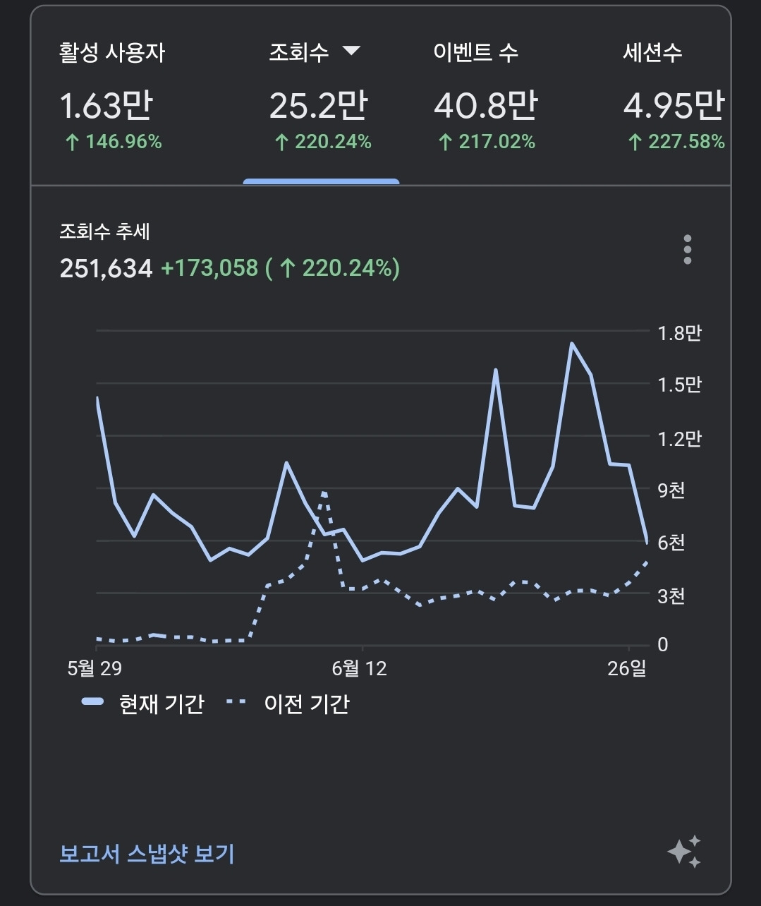 결과는 위와 같이 1개월 동안 25만 명이 내가 만든 사이트에 들어왔다.